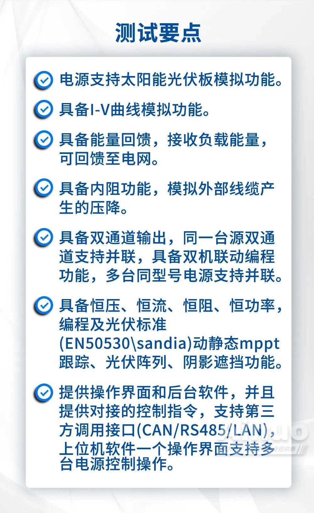 随着光储一体化大规模的应用,市场对储能PCS的需求普遍在500kW以上。同时,根据国家相关标准,储能PCS在试验和生产阶段须进行相关性能测试验证,这需要一台专业的模拟电源完成测试,且具备以下功能: