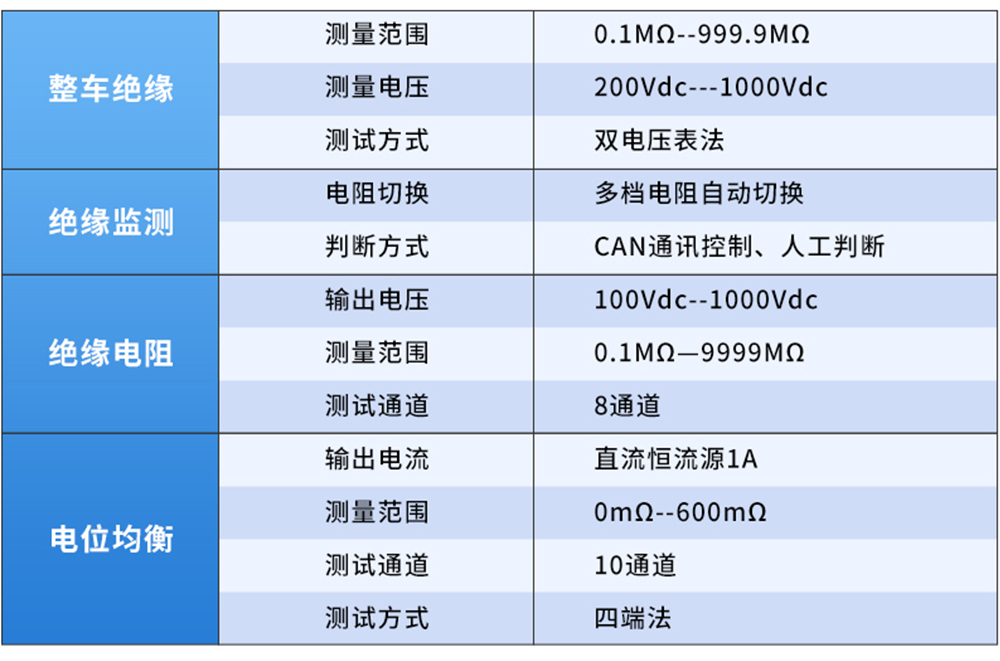 ★综合测试:整车绝缘、绝缘电阻、绝缘监测、电位均衡,多通道切换测试。